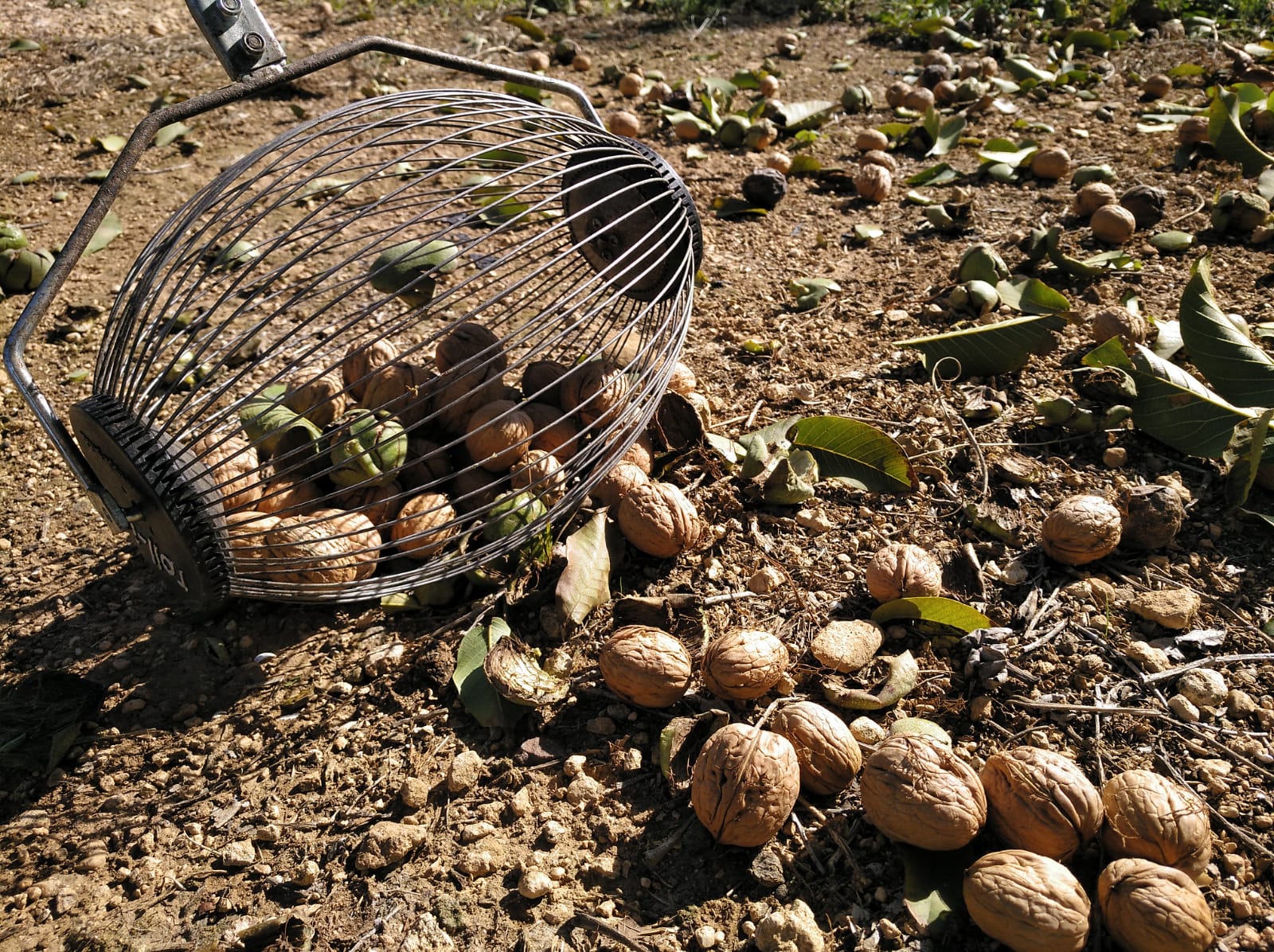 Para la recolección esperamos al momento en que la nuez empieza a abrir por si misma, lo que nos indica que esta en el punto óptimo de maduración, vibramos el nogal y una vez recogidas, las limpiamos y lavamos en la misma finca y secamos con corriente de aire forzado a temperatura ambiente, lo que estabiliza la grasa de las nueces y hace que conserven todas sus propiedades durante mucho tiempo sin alteraciones, no utilizamos ningún tipo de producto blanqueante, las calibramos y las pasamos por una máquina que sopla y retira las nueces vacías, obteniendo así unas nueces de calidad extra,